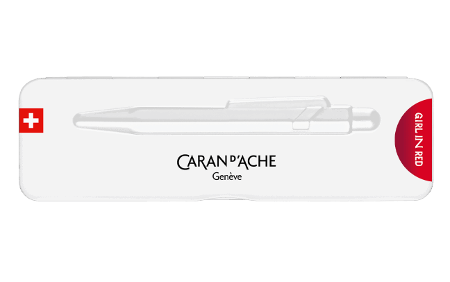 Hexagonal aluminium body, lightweight and durable Gradation of red on the body, girl in red’s favourite colour and emblematic of Caran d’Ache Girl in red logo in dark red pad printing Metal button and clip