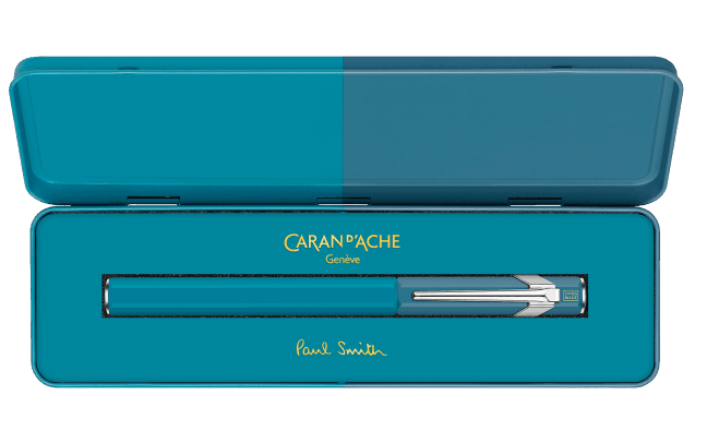 Two-tone metal box branded Caran d??Ache + Paul Smith in gold reflecting the design of the fountain pen Dimensions: 18.2 x 5.4 x 1.7 cm Weight: 0.084 kg