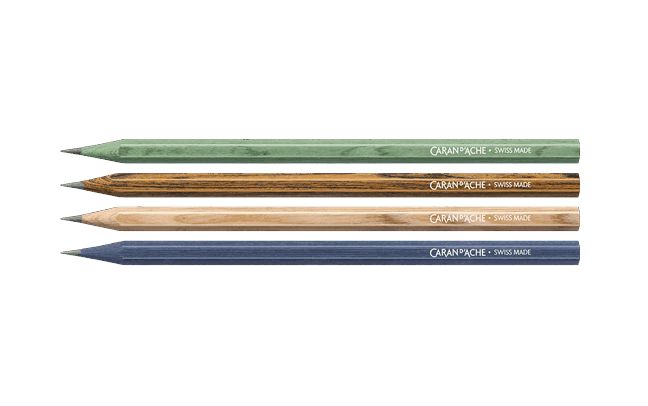 4 graphite pencils, 8 plys HB grading ??Patchouli wood?? fragrance: combines cedar, patchouli and burnt caramel 4 different colours: green, caramel, light natural, blue Poplar wood specie