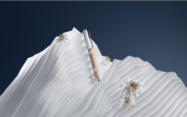 Cardboard case covered with premium textured midnight blue paper. The inside cover is coated with a relief motif inspired by the Matterhorn and edelweiss. Magnetic closing and protective box backing Dimensions: 21 x 11.5 x 7.5 cm Weight: 641 g (without the writing instrument)
